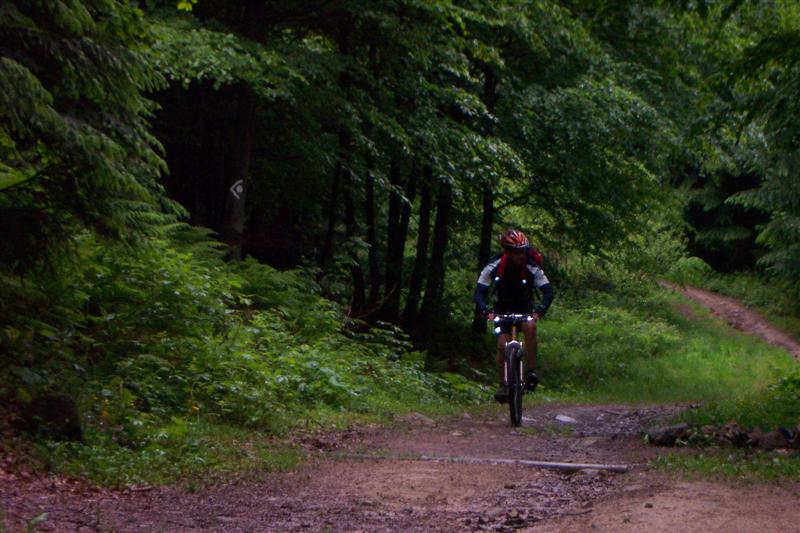 Náhradní trasa po asfaltu. V lese to byl jinak neprůjezdný masakr